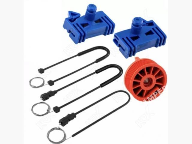Ремкомплект стеклоподъемника Renault Laguna II (передняя правая дверь). Применяется при следующих неисправностях: износ (обрыв) троса, поломка направляющих, истирание бороздок ролика. Любою деталь из ремкомплекта можно приобрести отдельно.